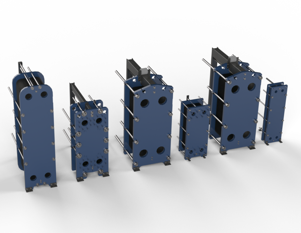 • These heat exchangers facilitate efficient heat transfer due to their large surface area and turbulent flow created by the plate design.